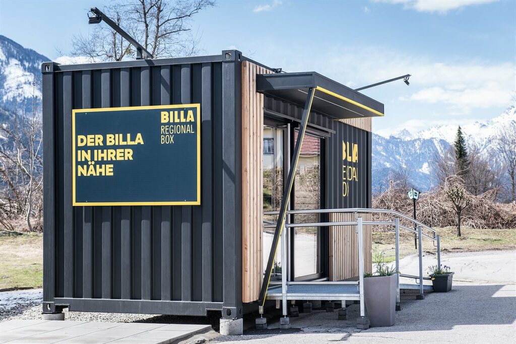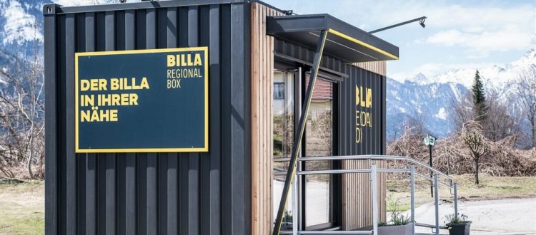 Die österreichische Rewe-Tochter Billa will den ländlichen Raum künftig besser mit Waren des täglichen Bedarfs versorgen. Dazu stellt das Unternehmen sogenannte „BILLA Regional Boxen“ auf – kleine Selbstbedienungsshops mit gerade einmal rund 11 Quadratmetern Grundfläche.